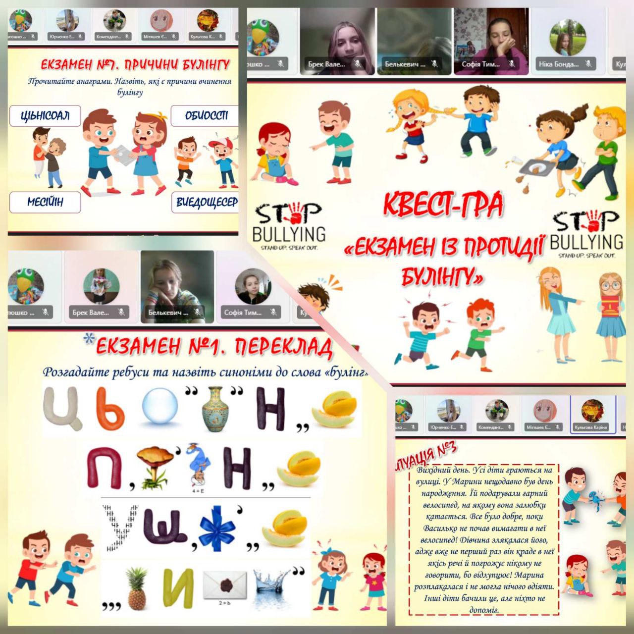 Стоп булінг! У рамках Всеукраїнського тижня протидії булінгу здобувачі освіти 1–11 класів нашої школи взяли участь у квестах, тренінгах, вікторинах, годинах спілкування та інформативних заняттях. Говорили про дружбу, безпеку, відповідальність і захист в Інтернеті.